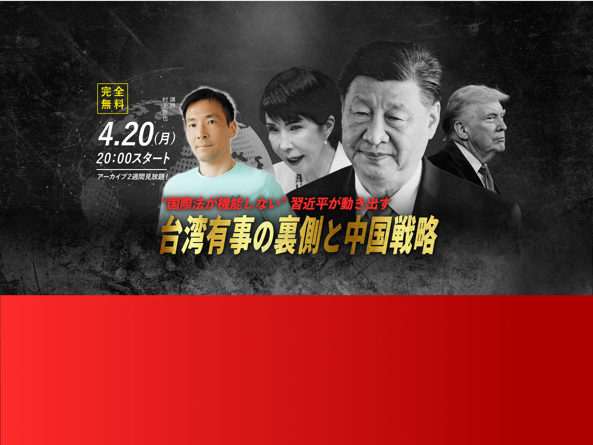 【村上哲也】4.20(月) WEBセミナー|「“国際法が機能しない” 習近平が動き出す 台湾有事の裏側と中国戦略」