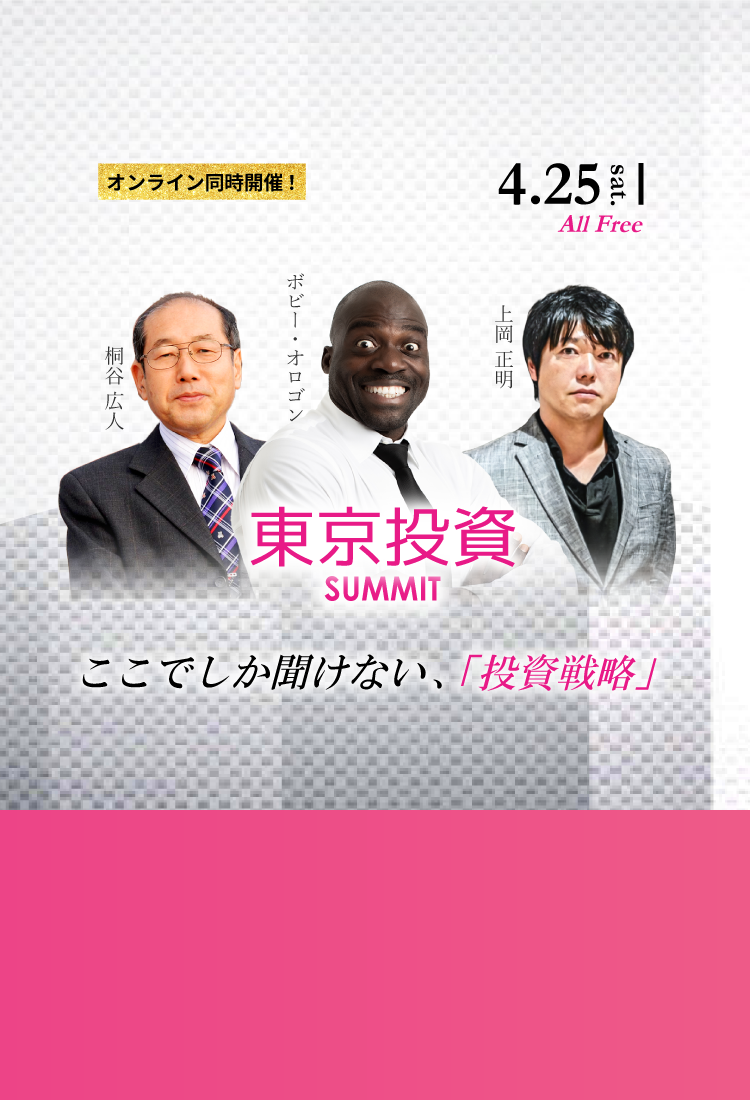【桐谷広人×ボビー・オロゴン×上岡正明】4.25(土) セミナー『東京投資サミット』オンライン同時開催